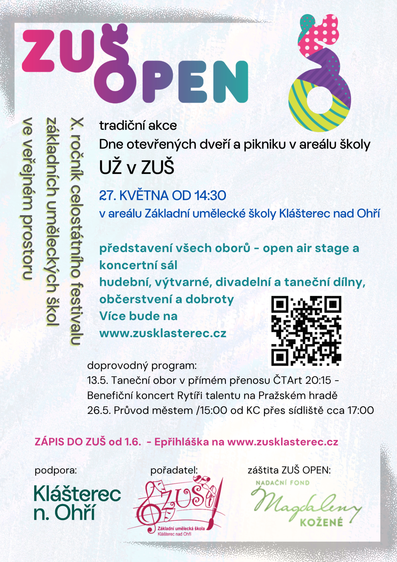 27.5. /14:30 – 18:30/ areál školy ZUŠ – ZUŠ OPEN aneb Den otevřených dveří / vstupné zdarma